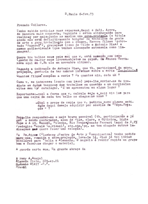 Aracy Amaral para Hélio Oiticica, 08/02/1973