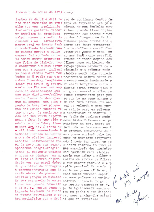 Hélio Oiticica para Aracy Amaral, 16/04/1973